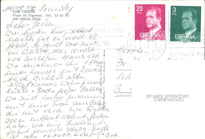 old postcard Ibiza Islas Baleares Club Figueral Speisesaal Strand postalisch gelaufen Erhaltung siehe scans