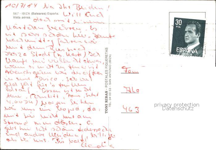 old postcard Ibiza Islas Baleares Dampfer Faehre Hafen Fliegeraufnahme postalisch gelaufen Erhaltung siehe scans