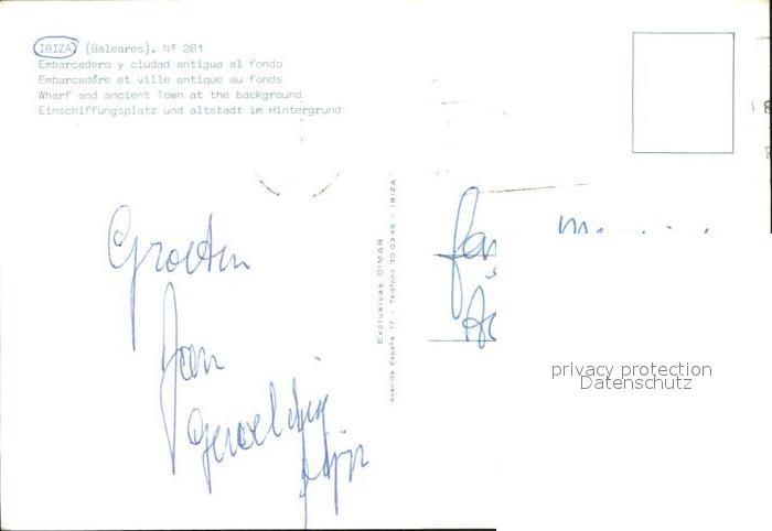 old postcard Ibiza Islas Baleares Embarcadero y ciudad antigua al fondo Hafen Altstadt postalisch gelaufen Erhaltung siehe scans