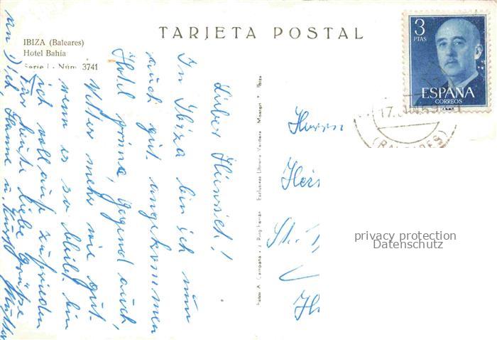 74022857 old postcard IBIZA Islas Baleares ES Hotel Bahia postalisch gelaufen Erhaltung siehe scans [WerneD78] KatCode: 11510