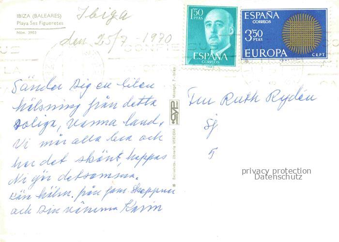 74148756 old postcard IBIZA Islas Baleares ES Playa Ses Figueretes postalisch gelaufen Fliegeraufnahme Erhaltung siehe scans [FriedD77] KatCode: 11510