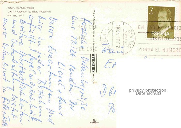 74087901 old postcard IBIZA Islas Baleares ES Vista general del puerto vista aérea postalisch gelaufen Fliegeraufnahme Erhaltung siehe scans [FriedD77] KatCode: 11510