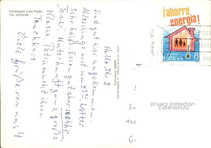 old postcard Ibiza Islas Baleares Ferienpark Cala Pada postalisch gelaufen Erhaltung siehe scans