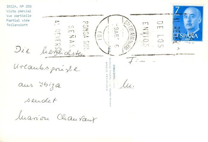 old postcard Ibiza Islas Baleares Fliegeraufnahme postalisch gelaufen Erhaltung siehe scans [WerneD78]