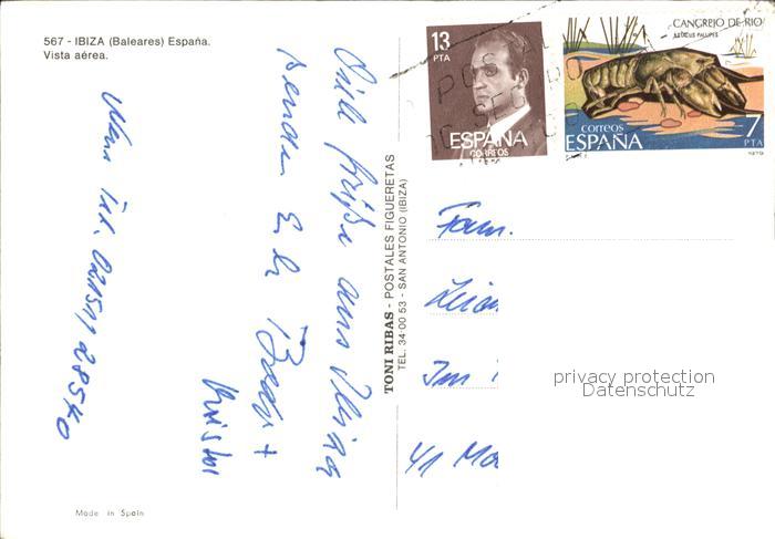 old postcard Ibiza Islas Baleares Fliegeraufnahme Hafen mit Personenschiff postalisch gelaufen Erhaltung siehe scans