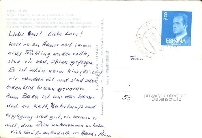 old postcard Ibiza Islas Baleares Folklorekleider Festungsmauer Stadt postalisch gelaufen Erhaltung siehe scans