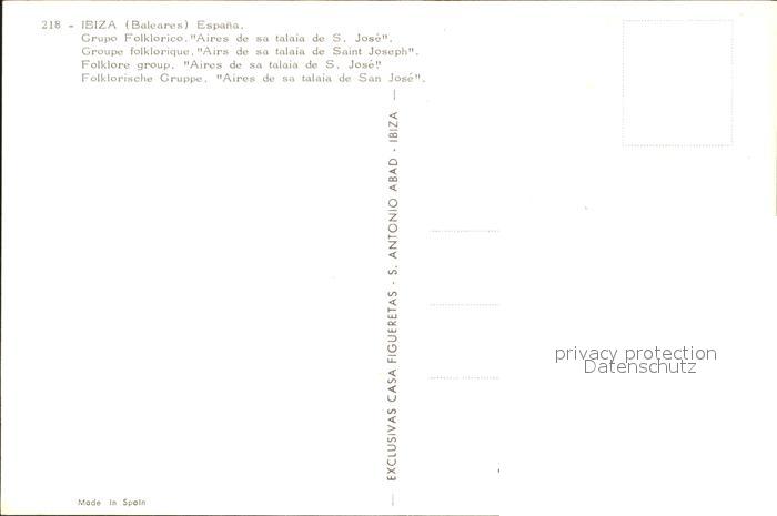 Ibiza Islas Baleares Folklorische Gruppe Aires de sa talaia San Jose postalisch nicht gelaufen Erhaltung siehe scans