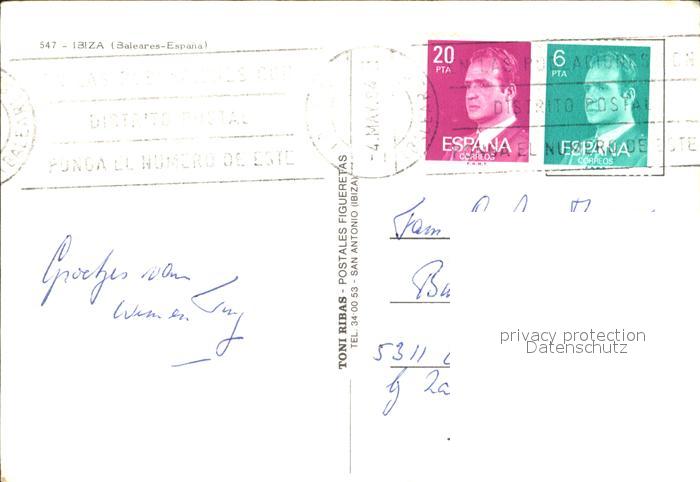 old postcard Ibiza Islas Baleares Fussgaengerzone Hafen postalisch gelaufen Erhaltung siehe scans