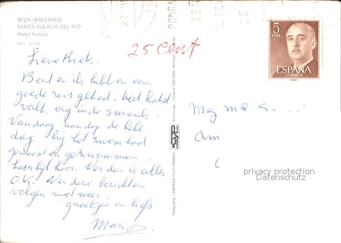 old postcard Ibiza Islas Baleares Hotel Fenicia Restaurant Swimming Pool postalisch gelaufen Erhaltung siehe scans