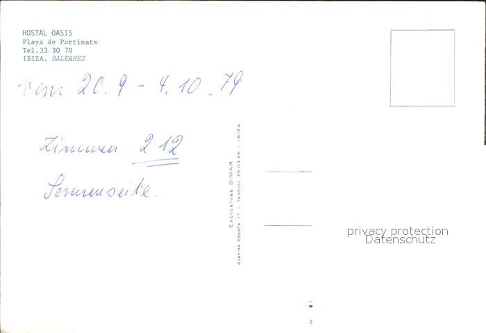 Ibiza Islas Baleares Hotel Oasis Playa de Portinatx postalisch nicht gelaufen Erhaltung siehe scans