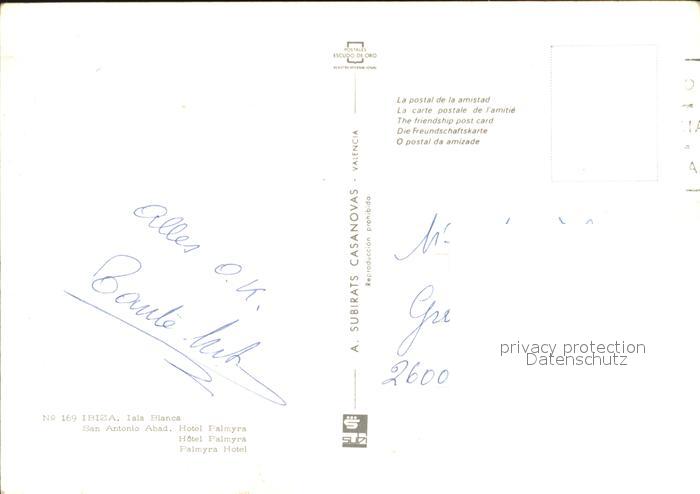 old postcard Ibiza Islas Baleares Hotel Palmyra postalisch gelaufen Erhaltung siehe scans