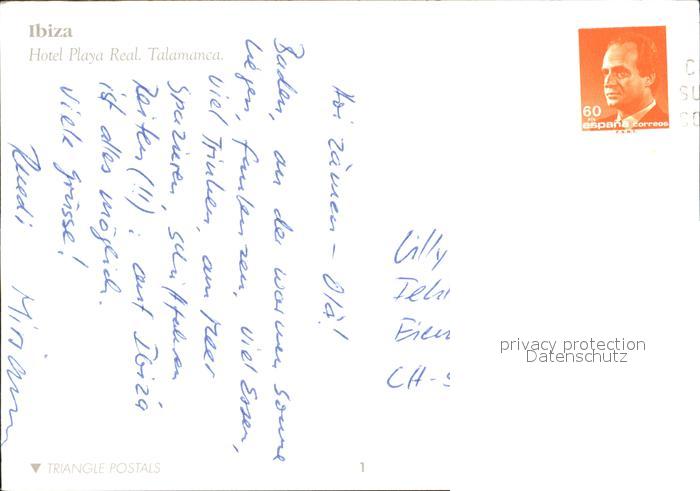 old postcard Ibiza Islas Baleares Hotel Playa Real Talamanca postalisch gelaufen Erhaltung siehe scans