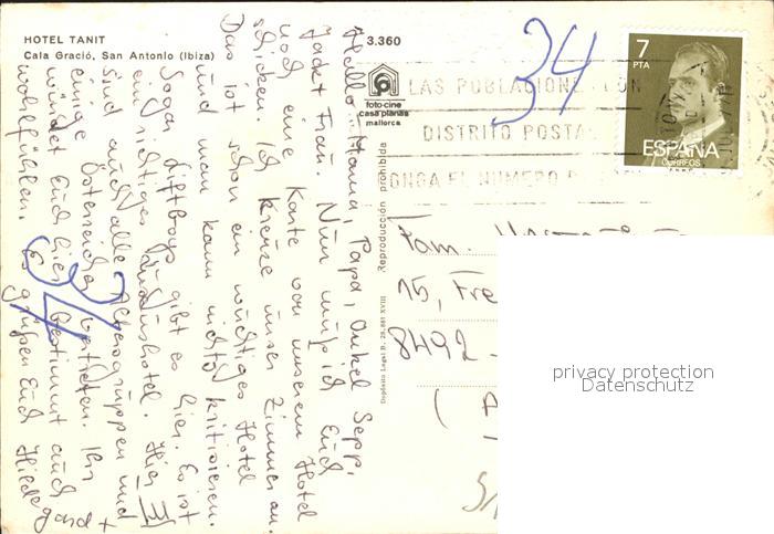 old postcard Ibiza Islas Baleares Hotel Tanit Cala Gracio San Antonio postalisch gelaufen Erhaltung siehe scans