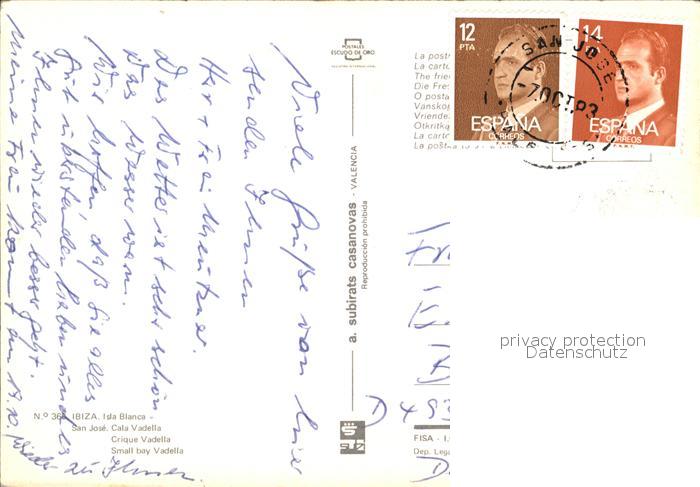 old postcard Ibiza Islas Baleares Isla Blanca San Jose Cala Vadella postalisch gelaufen Erhaltung siehe scans