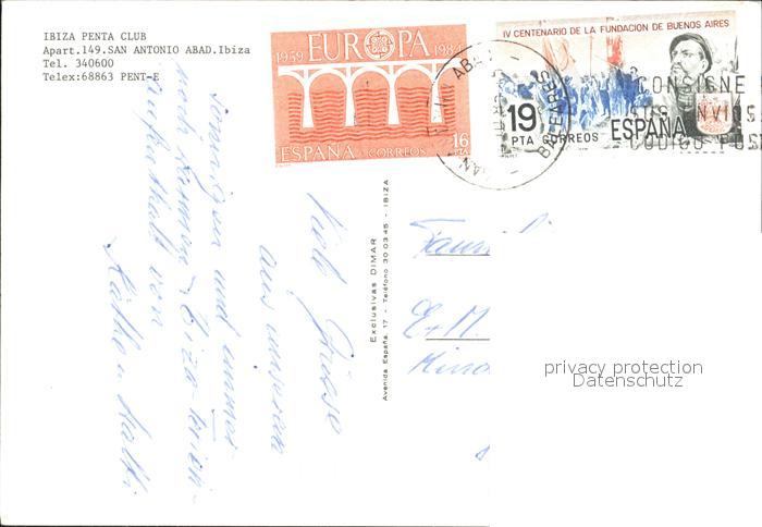 old postcard Ibiza Islas Baleares Penta Club postalisch gelaufen Erhaltung siehe scans