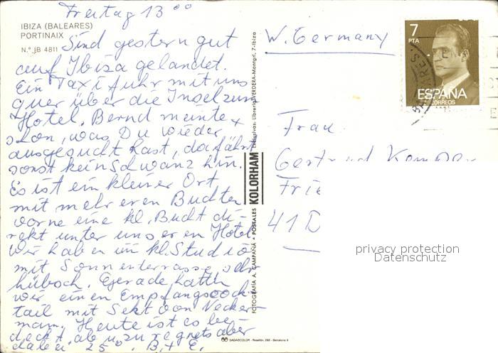old postcard Ibiza Islas Baleares Portinaix postalisch gelaufen Erhaltung siehe scans