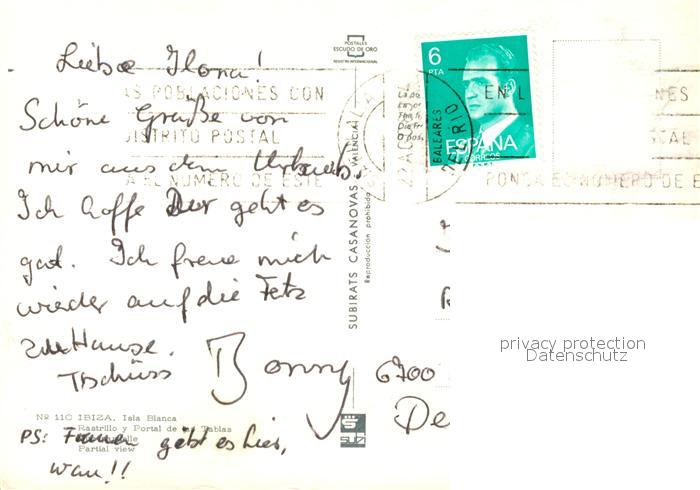 old postcard Ibiza Islas Baleares Rastrillo Portal Tablas postalisch gelaufen Erhaltung siehe scans [NatalD47]