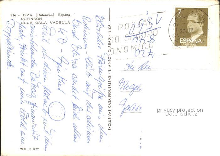 old postcard Ibiza Islas Baleares Robinson Club Cala Vadella Swimmingpool Reiten Park postalisch gelaufen Erhaltung siehe scans