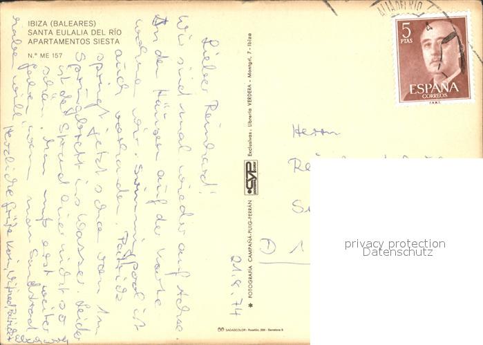 old postcard Ibiza Islas Baleares Santa Eulalia del Rio Apartamentos Siesta postalisch gelaufen Erhaltung siehe scans