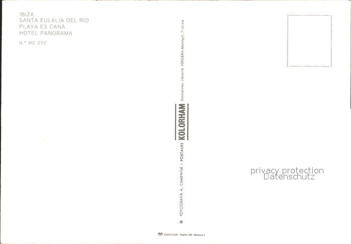 Ibiza Islas Baleares Santa Eulalia del Rio Playa es Cana Hotel Panorama postalisch nicht gelaufen Erhaltung siehe scans