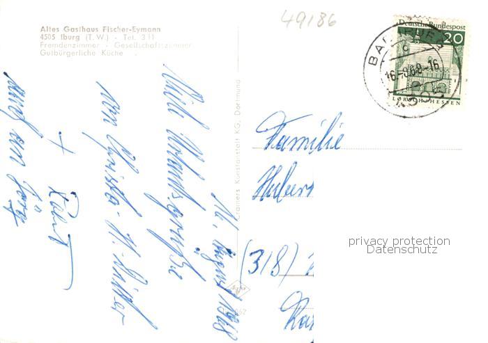 73854596 alte Postkarte Iburg Teutoburger Wald Altes Gasthaus Fischer Eymann Gastraeume postalisch gelaufen Erhaltung siehe scans [WerneD78] KatCode: 11110005566016