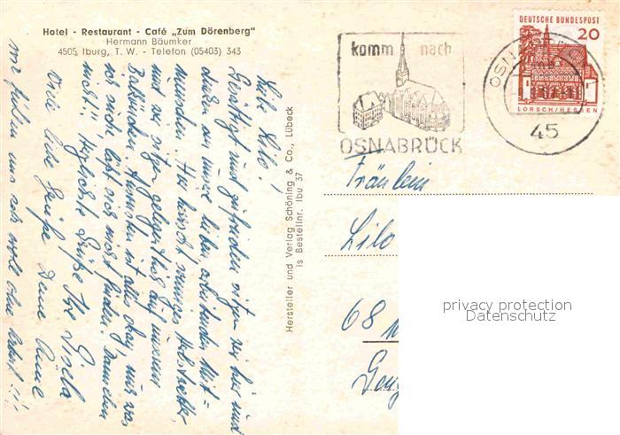 72720808 alte Postkarte Iburg Teutoburger Wald Doerenberg Hotel Restaurant Cafe Zum Doerenberg postalisch gelaufen Erhaltung siehe scans [LiesaD40] KatCode: 11110005566016