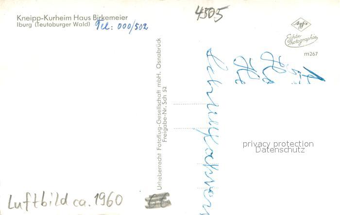 73707384 Iburg Teutoburger Wald Fliegeraufnahme Kneipp-Kurheim Haus Birkemeier postalisch nicht gelaufen Erhaltung siehe scans [LiesaD40] KatCode: 11110005566016