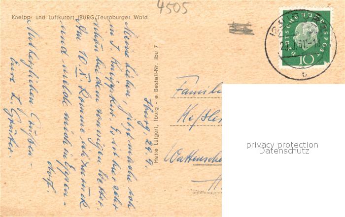 73707381 alte Postkarte Iburg Teutoburger Wald Gesamtansicht postalisch gelaufen Erhaltung siehe scans [LiesaD40] KatCode: 11110005566016