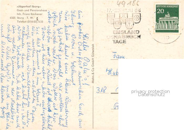 73865376 alte Postkarte Iburg Teutoburger Wald Jaegerhof Iburg Gast und Pensionshaus postalisch gelaufen Erhaltung siehe scans [WerneD78] KatCode: 11110005566016