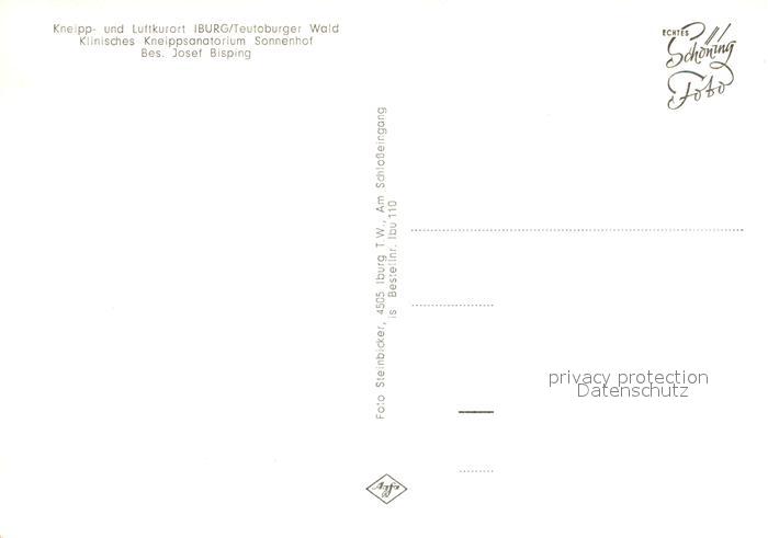 72957089 Iburg Teutoburger Wald Klinisches Kneippsanatorium Sonnenhof postalisch nicht gelaufen Erhaltung siehe scans [PaolaD17] KatCode: 11110005566016