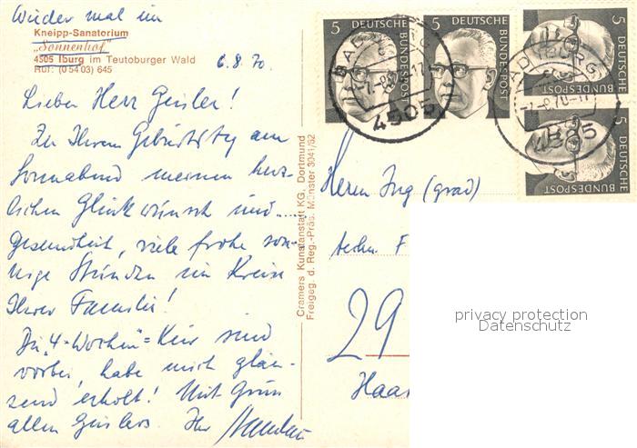 73022507 alte Postkarte Iburg Teutoburger Wald Kneipp Sanatorium Sonnenhof Fliegeraufnahme postalisch gelaufen Erhaltung siehe scans [WerneD78] KatCode: 11110005566016