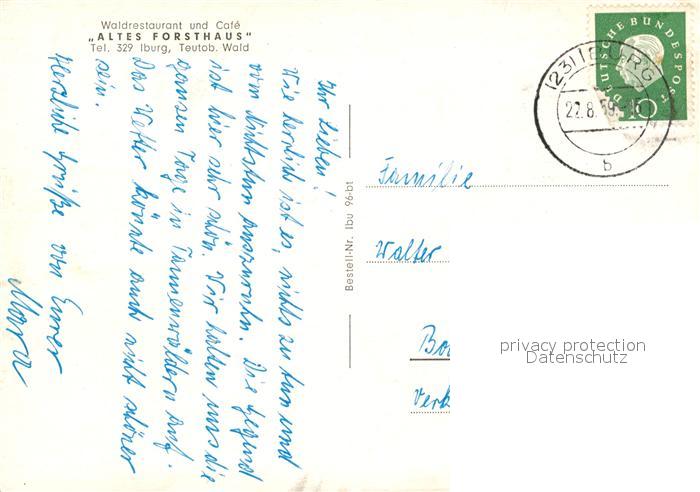 73051587 alte Postkarte Iburg Teutoburger Wald Waldrestaurant Altes Forshaus postalisch gelaufen Erhaltung siehe scans [NatalD47] KatCode: 11110005566016