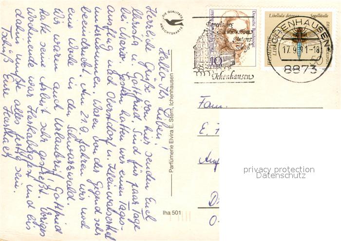 73736779 alte Postkarte Ichenhausen Motive Ortszentrum Kirche Brunnen postalisch gelaufen Erhaltung siehe scans [FriedD77] KatCode: 11110009774143