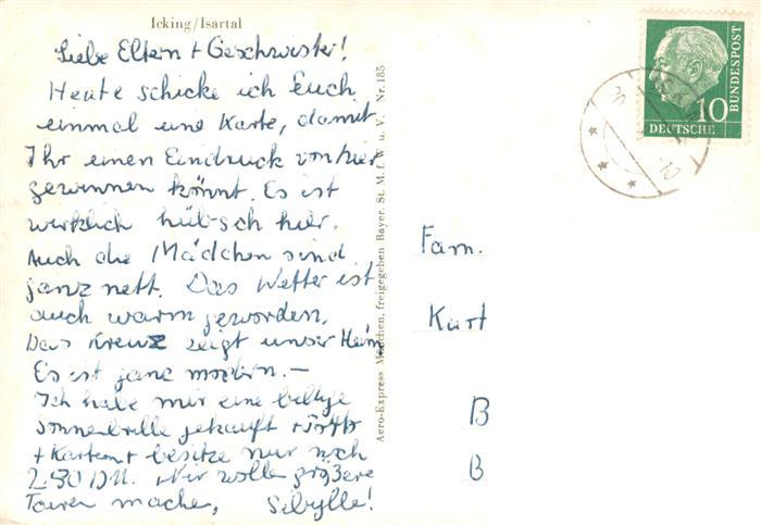 73868991 alte Postkarte Icking Isartal Fliegeraufnahme postalisch gelaufen Erhaltung siehe scans [FriedD77] KatCode: 11110009173130