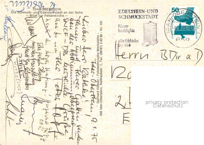 72822256 alte Postkarte Idar-Oberstein Felsenkirche postalisch gelaufen Erhaltung siehe scans [AndreD76] KatCode: 11110007134045