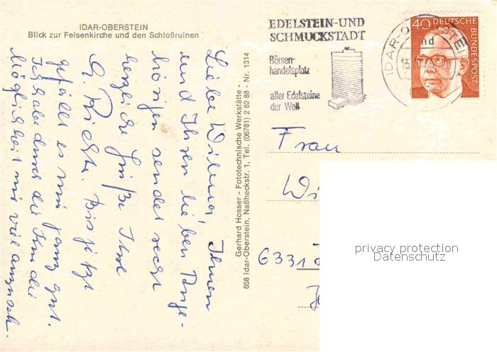 72902794 alte Postkarte Idar-Oberstein Felsenkirche Schlossruinen postalisch gelaufen Erhaltung siehe scans [AndreD76] KatCode: 11110007134045