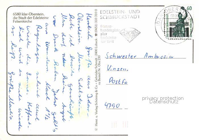 72694592 alte Postkarte Idar-Oberstein Felsenkirche Stadt der Edelsteine postalisch gelaufen Erhaltung siehe scans [FriedD77] KatCode: 11110007134045