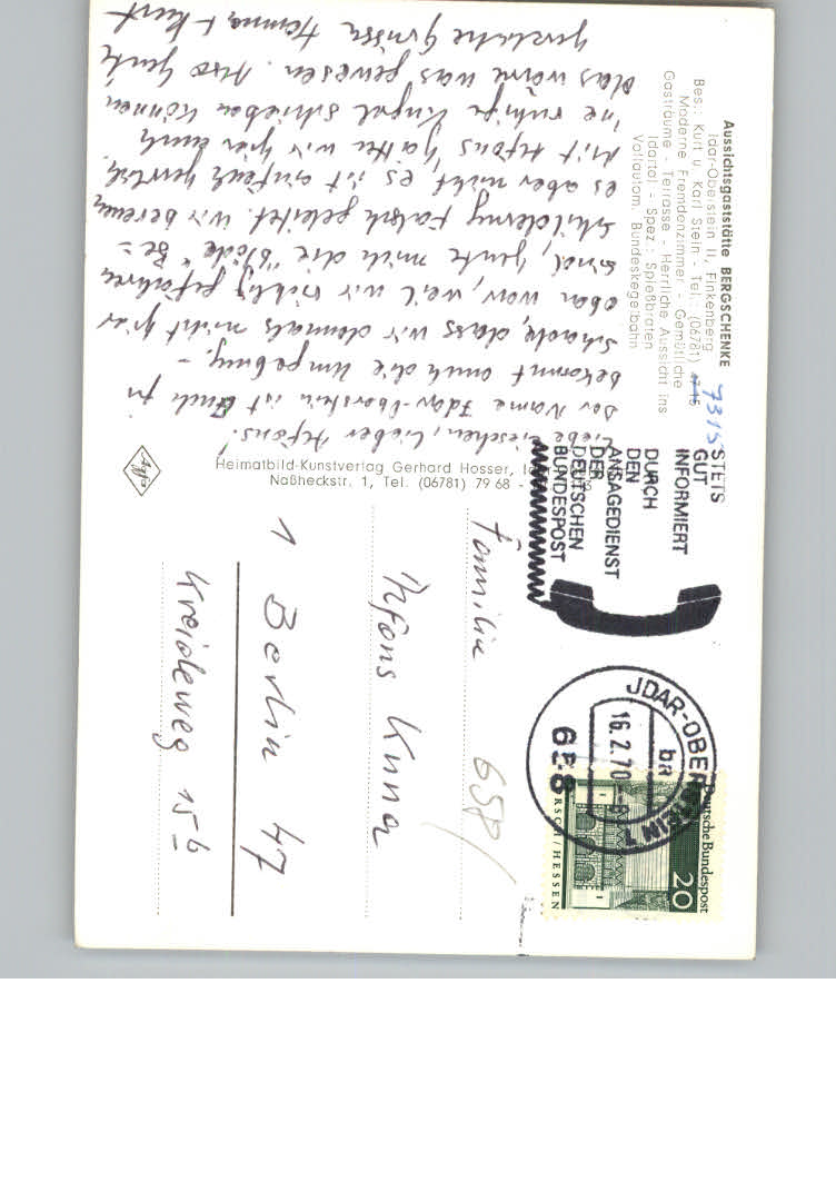 31146896 Idar-Oberstein Gaststaette Bergschenke postalisch nicht gelaufen KatCode: 11110007134045