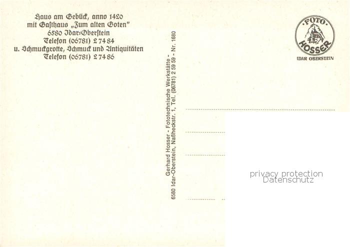 73757969 Idar-Oberstein Haus am Gebueck mit Gasthaus Zum alten Goten Gaststube Schmuckgrotte postalisch nicht gelaufen Erhaltung siehe scans [WerneD78] KatCode: 11110007134045