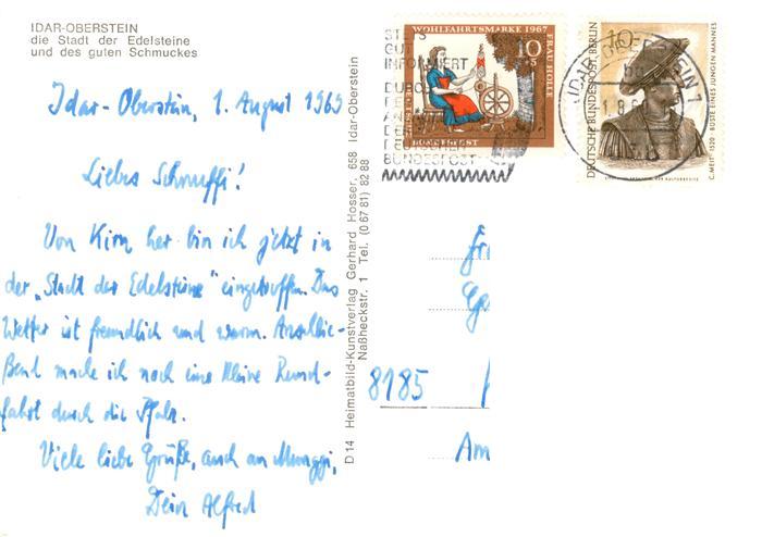 73895252 alte Postkarte Idar-Oberstein Jdar-Oberstein Ortsansicht Nahepartie Klotzbergkaserne Felsenkirche mit Schlossruine Schoenlautenbach Bruecke Jugendherberge postalisch gelaufen Erhaltung siehe scans [WerneD78] KatCode: 11110007134045