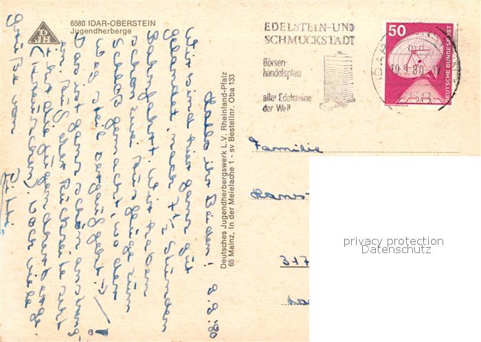 73574412 alte Postkarte Idar-Oberstein Jugendherberge Fliegeraufnahme postalisch gelaufen Erhaltung siehe scans [FriedD77] KatCode: 11110007134045