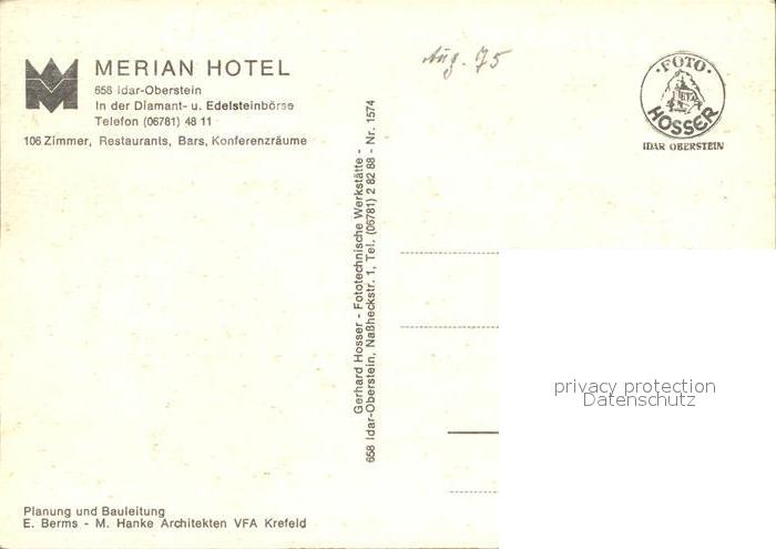 72425058 Idar-Oberstein Merian Hotel postalisch nicht gelaufen Erhaltung siehe scans KatCode: 11110007134045