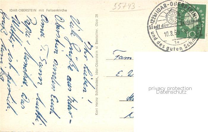 73762393 alte Postkarte Idar-Oberstein Ortspartie Burgruine Felsenkirche postalisch gelaufen Erhaltung siehe scans [FriedD77] KatCode: 11110007134045