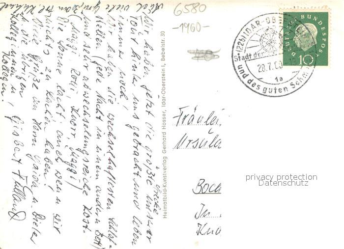 73695459 alte Postkarte Idar-Oberstein Panorama Stadt der Edelsteine Jugendherberge Bruecke Klotzbergkaserne Felsenkirche Diamantschleiferei postalisch gelaufen Erhaltung siehe scans [FriedD77] KatCode: 11110007134045