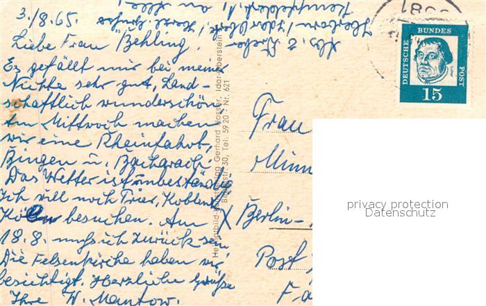 72948100 alte Postkarte Idar-Oberstein Partie an der Nahe Felsenkirche Burgruine postalisch gelaufen Erhaltung siehe scans [FriedD77] KatCode: 11110007134045