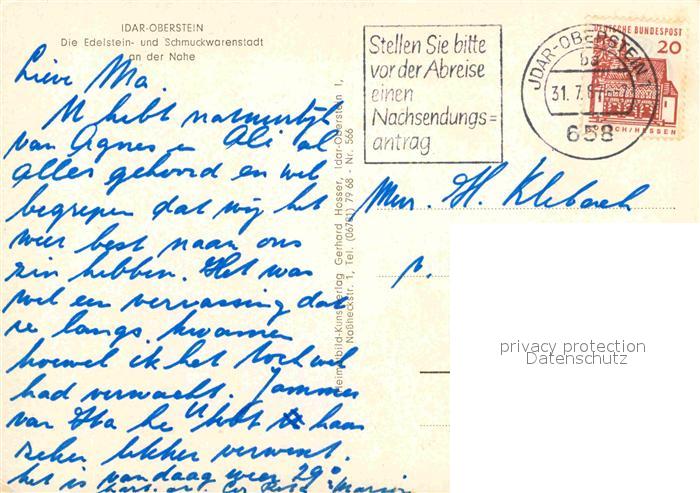 72772718 alte Postkarte Idar-Oberstein Teilansicht mit Felsenkirche postalisch gelaufen Erhaltung siehe scans [WerneD78] KatCode: 11110007134045