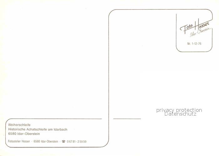 72812593 Idar-Oberstein Weiherschleife postalisch nicht gelaufen Erhaltung siehe scans [WerneD78] KatCode: 11110007134045