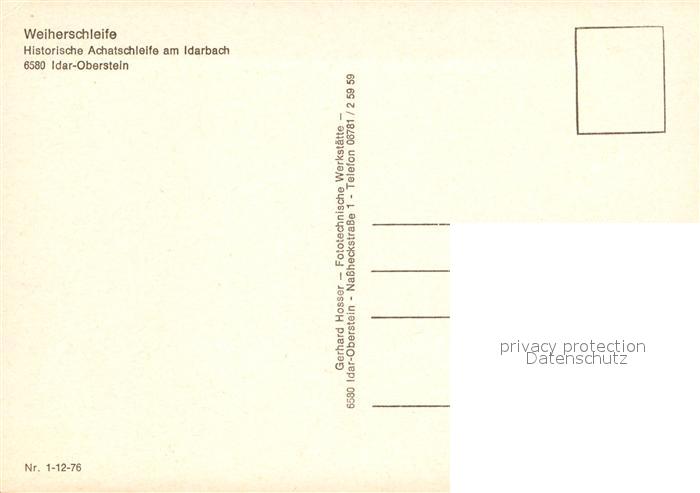 73181121 Idar-Oberstein Weiherschleife Achatschleife postalisch nicht gelaufen Erhaltung siehe scans [NatalD47] KatCode: 11110007134045