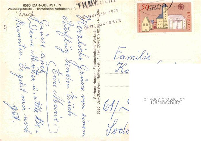 72900186 alte Postkarte Idar-Oberstein Weiherschleife Achatschleife postalisch gelaufen Erhaltung siehe scans [LiesaD40] KatCode: 11110007134045