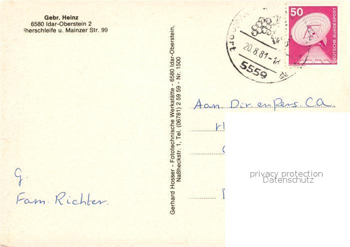 72929929 alte Postkarte Idar-Oberstein Weiherschleife Schmuckstein Scheiferei Grotte postalisch gelaufen Erhaltung siehe scans [WerneD78] KatCode: 11110007134045